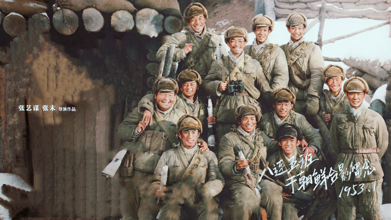 其次是运镜,不得不佩服张艺谋导演的运镜功力,志愿军在战壕内变换位置时采用的是俯拍,镜头跟随人物快速移动,配合音乐,紧张感顿时就有了;在最后的对决中,一个大景框,中间只有一块石头,背景是黑压压的森林,志愿军处境的危急,背水一战的氛围在一个场景中就烘托出来了,不愧是张艺谋,基本没有太大变化的布景下,也能有如此精彩的调度,为电影增添了太多光彩。
